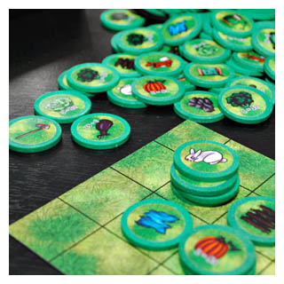 Using simple matching and placement mechanics, players plant and harvest crops to earn cash, while simultaneously playing evil bunny and bug tiles on their opponents’ farms to slow them down. As players dynamically build out their farm each game from a collection of 189 possible tiles, no two play-throughs will be the same!